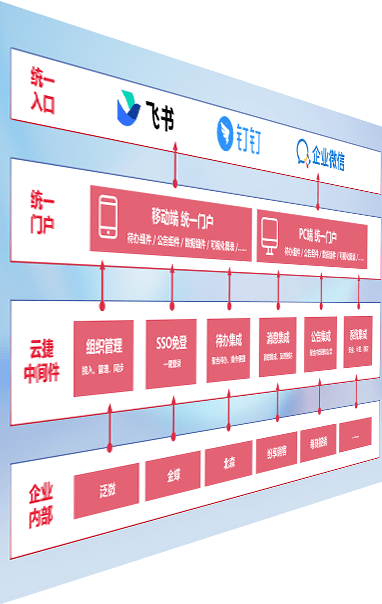 对协作平台提供支持服务,,支持企业应用与协作平台对接,,,,包含组织同步、、、消息集成、、待办集成等。。支持目前主流的协作平台:钉钉、、、、企微和飞书。。